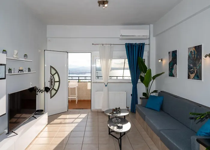 Die 100 m^2 große Ferienwohnung Be Crete - Horizon Chania liegt in unmittelbarer Nähe von verschiedenen Sehenswürdigkeiten der Gegend: Koukouvagia befindet sich unter anderem etwa 5 Minuten zu Fuß von hier entfernt. Das Apartment bietet Ausblicke aufs Meer.